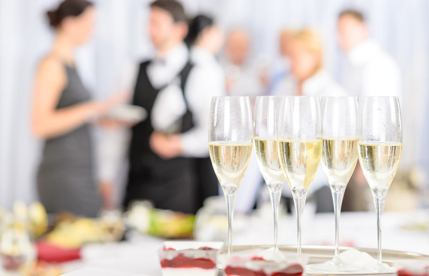 Close up of mini hamburgers at catering event.